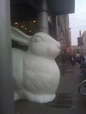 Oggi volevo comprare un libro nella Feltrinelli di Piazza Cavour e ad accogliermi ho trovato dei conigli giganti. Settimana della moda milanese? Un nuovo ambient? Un progetto di un nuovo artista?